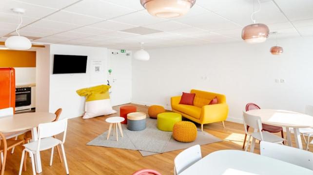 - Des espaces communs variés favorisant le bien-être et la convivialité (rooftop, 158 m² d’espaces verts et loisirs, salles de coworking et de sport, etc.)