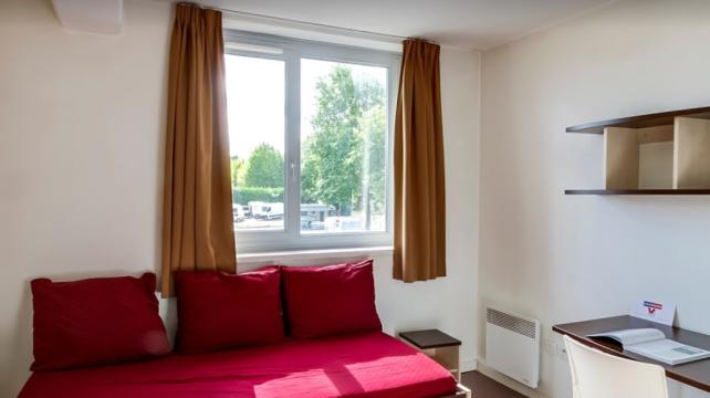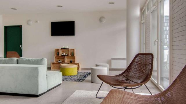 - Une résidence moderne qui offre 250 m² d’espaces communs : cafétéria, laverie, espace de coworking, buanderie, salle TV, salle de sport et terrasse.