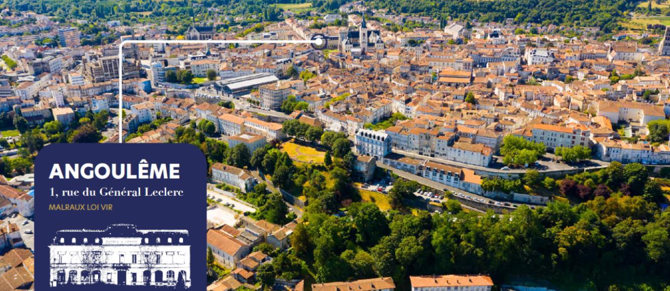 Le renouveau d’une institution à AngoulêmeFace à l’Hôtel de ville et à ses jardins, l’ensemble architectural en impose par son style néoclassique, très couru au XIXe siècle, comme par ses dimensions. Édifié en 1833, il eut plusieurs vies, a grandi, s’est transformé. D’abord Hôtel des Postes, il fut surtout, jusqu’à il y a peu, une prestigieuse succursale bancaire. Trois entrées pleines de promesses, pour accéder à l’édifice. Chacune avec son charme. La cour d’honneur, imposante et minérale rue de l’Arsenal, façon jardin anglais côté rue du Château et, rue du Général Leclerc, sous la grande verrière Eiffel, les contours du futur jardin intérieur, trait d’union entre passé prestigieux et vie contemporaine.Le reste du bâtiment est à cette image, lumineux et patrimonial, avec des atouts remarquables à préserver pour des siècles encore !Angoulême, Créer, inventer, vibrerAngoulême est la capitale internationale de la Bande Dessinée et de l’Image, pôle culturel au rayonnement mondial. Et tellement plus encore ! L’emplacement est stratégique, proche du magnétique océan, des métropoles de Bordeaux ou Poitiers et à moins de deux heures de Paris. Le cadre est unique, entre nature, patrimoine et culture. Née sur un plateau verdoyant, la ville, surnommée « le balcon du Sud-Ouest », s’est développée vers le fleuve Charente, inspirant et porteur d’activités pour tout son bassin. D’abord la filature, le papier, puis la mécanique…Aujourd’hui c’est un pôle industriel majeur du sud-ouest, porté par l’innovation, qui attire entreprises et jeunes talents. Elle est aussi un grand espace de création, de formation artistique. Et il fait si bon y vivre ! Des remparts jusqu’au fleuve, en passant par les jardins, les terrasses des cafés…Démographie 142 478 habitants GrandAngoulême41 423 habitants Angoulême56 % de la population a moins de 45 ansÉconomie 8 510 entreprises65 000 emplois dont 7 000 dans les industries du futur- 7,4 % taux de chômage1e département industriel de la régionTourisme : 10 % de l’activité économique de la Charente+ 33 % sur 5 ans : prix dans l’immobilier ancienAttractivité2e centre de productiond’images animées240 000 visiteursFestival International de la Bande Dessinée14e des villesde taille moyennebaromètre Arthur LoydCognacAccessibilité3,6 milliards d’€,15 000 emplois directs et indirects sur le territoireCarrefour du sud-ouest entre Bordeaux, Limoges et Poitiers36 min de Bordeaux en train38 min de Poitiers en train1h50 de Paris en TGVÉtudiants6 000 étudiants+ 22 % en 6 ans