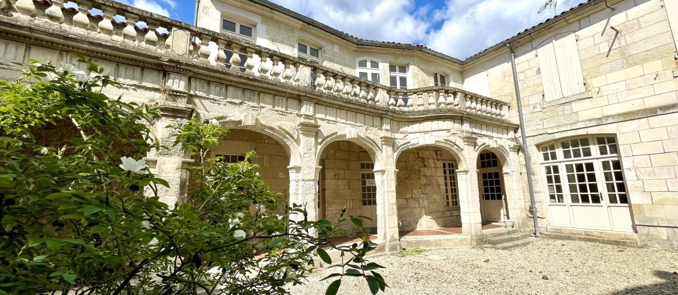 Un ensemble patrimonial, un havre de paixL’ensemble immobilier, qui a abrité pendant plus de 150 ans la Chambre des Notaires de Charente-Maritime, fut édifié entre le XVIIIe et le XIXe siècle. Il arbore d’élégantes façades en pierres typiquement saintaises. Sa haute porte d’entrée s’ouvre sur une ravissante cour végétalisée, avec en arrière-plan un bâtiment auquel on accède par une galerie à colonnades du XVIIIe siècle. À l’intérieur aussi, les bâtiments révèlent de nombreux éléments patrimoniaux, qui seront restaurés avec soin afin de restituer toute la beauté des lieux : corniches, moulures au plafond, boiseries murales, parquet en bois massif dans les appartements et tomettes dans les parties communes, ferronneries, cheminées…Saintes, la dynamique ville d’Art et d’HistoireÀ seulement 30 minutes du littoral royannais et des plages océanes de Charente-Maritime, Saintes est une cité touristique réputée, au patrimoine architectural riche de 2 000 ans d’histoire, avec ses vestiges gallo-romains et médiévaux remarquables.Sur le plan économique, la commune s’affirme comme un centre tertiaire dynamique et un pôle commercial de dimension régionale : elle accueille, entre autres, le siège de la plus grande coopérative de consommateurs de France, Coop Atlantique.Bercés par la Charente et sa vallée verdoyante, les Saintais apprécient la douceur de vivre de cette commune connectée, à seulement une heure de l’aéroport international de Bordeaux ou de La Rochelle.• 62 000 habitants en métropole• 26 906 habitants en ville• 2e destination touristique de France (Charente-Maritime)• 3 millions de visiteurs chaque année (Charente-Maritime)• 10e des villes les plus attractives pour un investissement locatif (Masteos/Unkle, 2021)• 3,9 Milliards d’euros en 2022 pour la filière du Cognac• 26 482 emplois (Agglomération) pour la filière du Cognac• 50 min de La Rochelle en train• 1h29 de Bordeaux en train• 3h01 de Paris en train• 35 min des plages